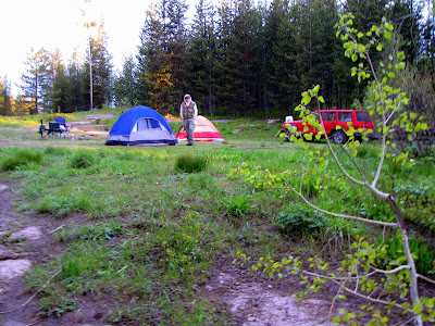 ...before we turned off the highway, followed a dirt road, and arrived at Sheep Falls. Justin and Beth took us here a few summers back, but we wanted to share it with the brother and sister...Here's our camp with the foil dinners already sizzling on the fire. Go team Ashmore...er...and Jolley! Team Ashmore-Jolley with a hyphen!....